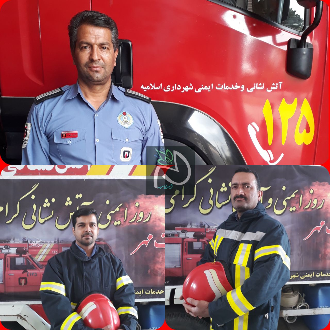 در پایان مراسمات و باحضور امام جمعه محترم اسلاميه وسایر مسوولین از آتش نشانان شهرداري اسلاميه تقدير بعمل آمد.